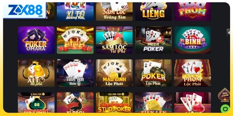 Những loại game bài thịnh hành trên nhà cái ZX88